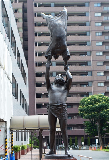 に「巣立ち」の像がある。