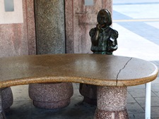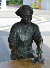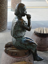 アコス広場に「アコちやん」「おせんさん」の像があった。