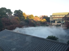 昭和20年(1945年)5月25日の空襲で発生した早稲田の火災の際も椿山荘の三重塔は焼失を免れた。 |