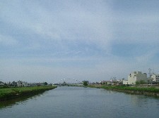 すぐ下流の、通称「おくまんだし」は江戸川で一番深いところ、そこの水が茶の湯によいので昔は江戸城から水舟が水をくみにきたという。水流が異様に光ってよどむ上を、葦舟がなお2隻、3隻と上ってくる。