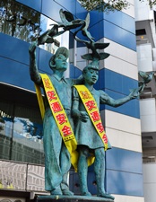 新宿区新宿3丁目の新宿5丁目東交叉点に「交通安全の誓い」の像があった。