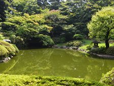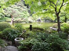 重要文化財茶室「光華」 旧朝香宮邸の茶室「光華」は、武者小路千家の茶人である中川砂村 (是足庵 1880−1957)が設計し、大坂の数寄屋大工棟梁、平田雅哉(1900−1980)が施工して、昭和11年(1936年)に上棟しました。「光華」という名称は、朝香宮鳩彦殿下自らの命名で、扁額も殿下直筆のものと言われています。 茶席は小間・広間・立礼席(りゅうれいせき)の三席で構成されています。屋根は本体が桟瓦葺、庇が柿(こけら)板を銅板で包んだ柿葺(こけらぶき)となっています。立礼席は明治の初期に裏千家が外国人のために考案した椅子式点前の茶席で、戦後各流派家元の茶席に普及しましたが、戦前の茶室では珍しいと言えます。天井が高く、全体に明るく開放的な造りとなっているのが特徴で、アール・デコ様式の本館と合わせるかのように、施主である殿下の好みが反映されていると思われます。平成27年(2015年)には、本館等とともに国の重要文化財に指定され、平成28年(2016年)に耐震補強を行いました。 |
