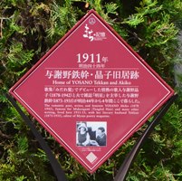 歌集「みだれ髪」でデビューした情熱の歌人与謝野晶子(1878〜1942)と夫で『明星』を主宰した与謝野鉄幹(1873〜1935)が明治44年から4年間ここで暮らした。 |