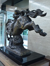 この「天女の笛」像は東京都名誉都民である彫刻家北村西望先生から満百歳を記念して東京都社会福祉総合センターに寄贈されたものです。