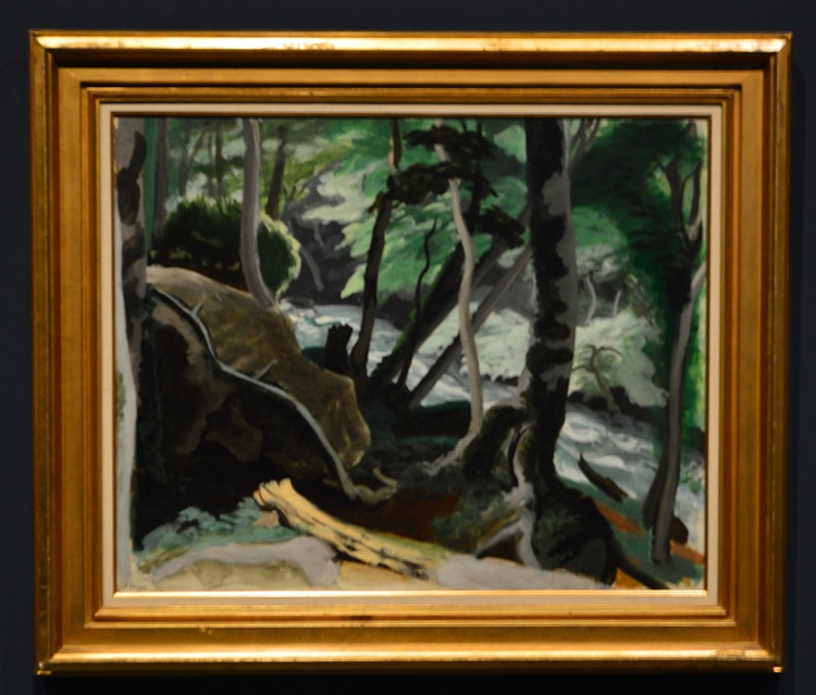 安井が青森県の十和田湖と奥入瀬を訪れたのは昭和7年(1932年)のことです。奥入瀬では「かなり自分のそばから景色がはじまっているので、前景、中景、後景の変化に苦心しました」と言っています。 |