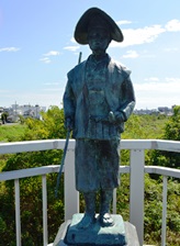 | 織物の街八王子から、第一に頭に浮かんだのが養蚕。これからは、国際感覚を備えた都市に発展して欲しいという願いから、女性の姿はロングドレスの洋装にした。 |