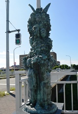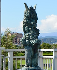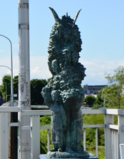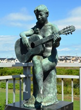 | ギターを抱えた若い女性の裸像。これからの文化をになう若人がギターをつまびく乙女の姿で八王子の発展を望んでいる。 |