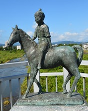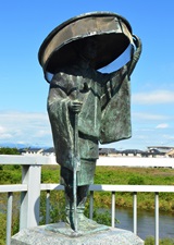 | 市の歴史上の人物である武田信玄の息女松姫をモデルにしたもの。武田信玄の息女・松姫は織田信長の長男・信忠との婚約が成立したものの、両家の不和によって実を結ぶことなく、信忠は本能寺の変で自害。武田氏滅亡で追われ武蔵に逃れた松姫は、八王子に庇護されて尼となり信松院を開基しました。 |