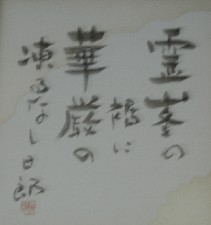 レストラン「パティオ」の中に岡田日郎の色紙があった。