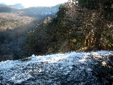 湯の湖から湯滝を見下ろす。