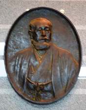 このレリーフは日比谷公会堂内にあるものから複製したものである。大正9年、ときの東京市長後藤新平(のちに内務大臣)の発案になる「八億円計画」(首都改良計画)に全面的援助を快諾した善次郎は、この計画の調査費として350万円を出資しただけで、翌年凶変で世を去っている。 出資金は、その後昭和4年10月に完成した日比谷公会堂と、市政会館の建設に充てられた。もとのレリーフは後藤新平、安田善次郎の二人を顕彰して日比谷公会堂演壇左右壁面に掲出されている。 |