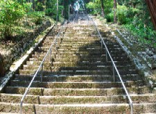 外、堂塔樓閣数を知らず、短き筆の記に 餘れハ、南部六郎の霊といふに詣り、名たゝる 階の急なるを見て、なたらかなる阪路を下り て宿坊に帰る。 |