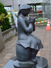 恵庭駅西口に「すずらんに寄せて」の像があった。