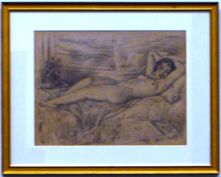 横たわる裸婦と猫
