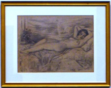 海辺を背景に眠る裸婦